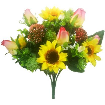 38cm SUNFLOWER ROSEBUD AND SUCCULENT BUSH RED/YELLOW/GREEN