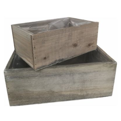 SET OF 2 RECTANGULAR WOODEN PLANTER (PLASTIC LINED) GREY WHITE WASHED - GARDEN